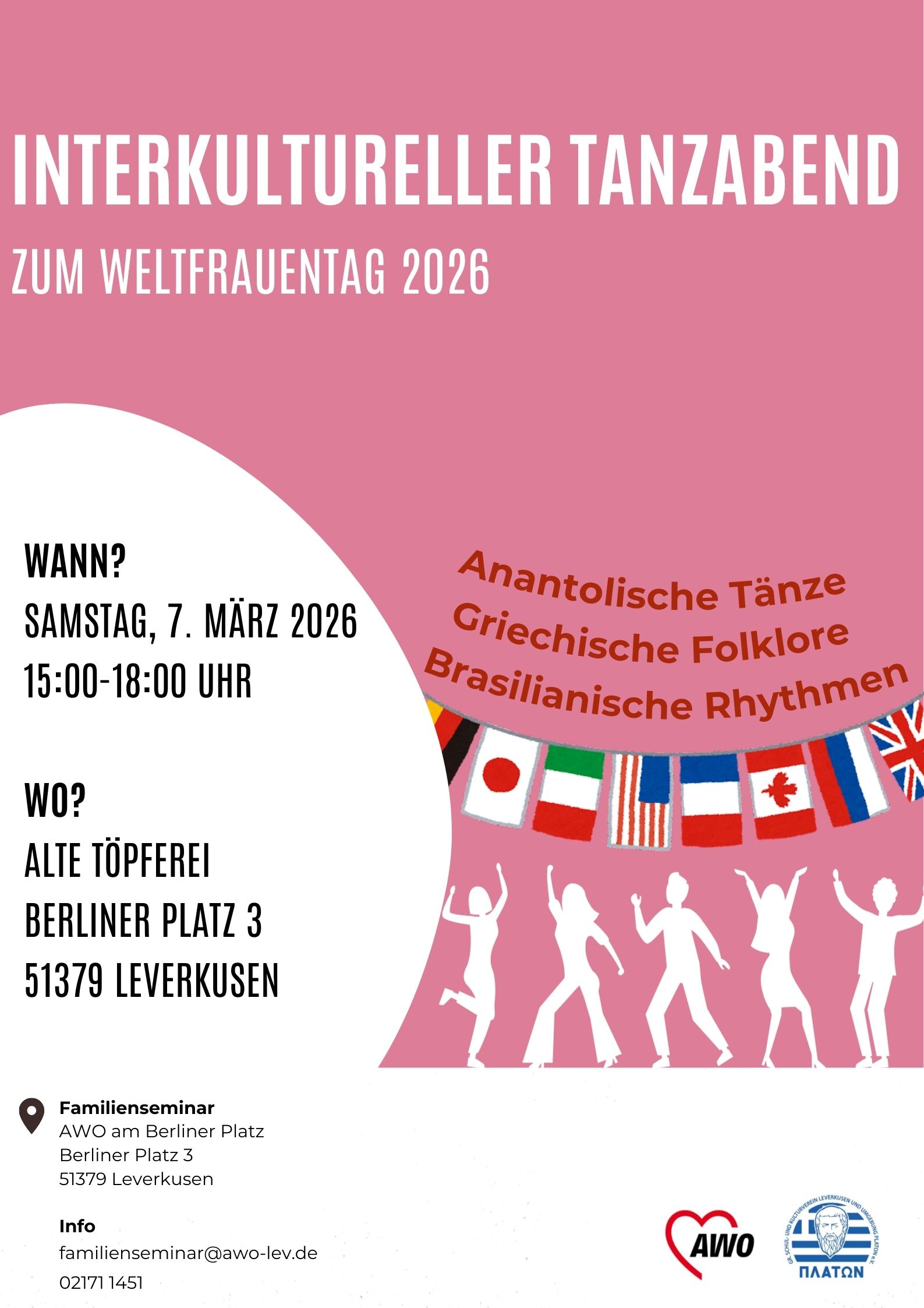 Zum Weltfrauentag feiern wir die Vielfalt und Stärke von Frauen mit einem tollen Tanzabend. Freut euch auf anatolische, griechische und brasilianische Rhythmen – voller Energie, Lebensfreude und Gemeinschaft.